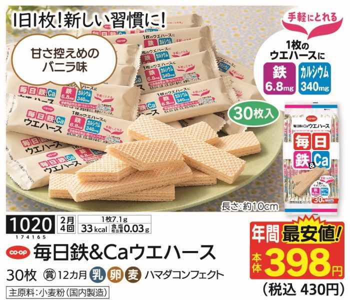 - CO・OP毎日鉄&Caウエハース(鉄、Ca) 30枚(コープ商品サイト)