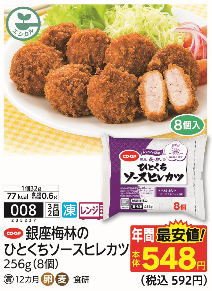 - CO・OP(レンジで簡単!)銀座梅林のひとくちソースヒレカツ 256g(8個)(コープ商品サイト)