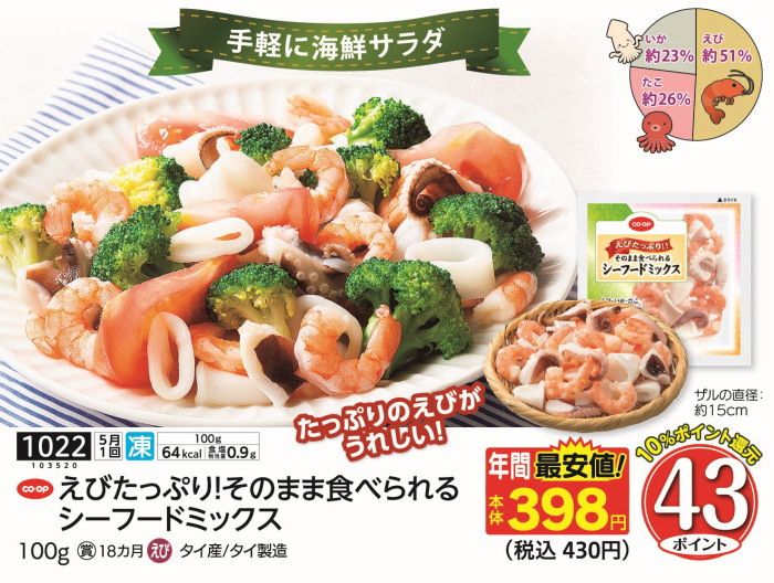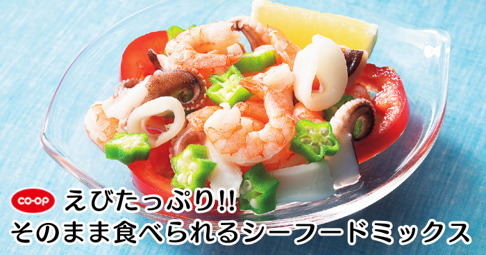 - CO・OPえびたっぷり!!そのまま食べられるシーフードミックス 100g(コープ商品サイト)
