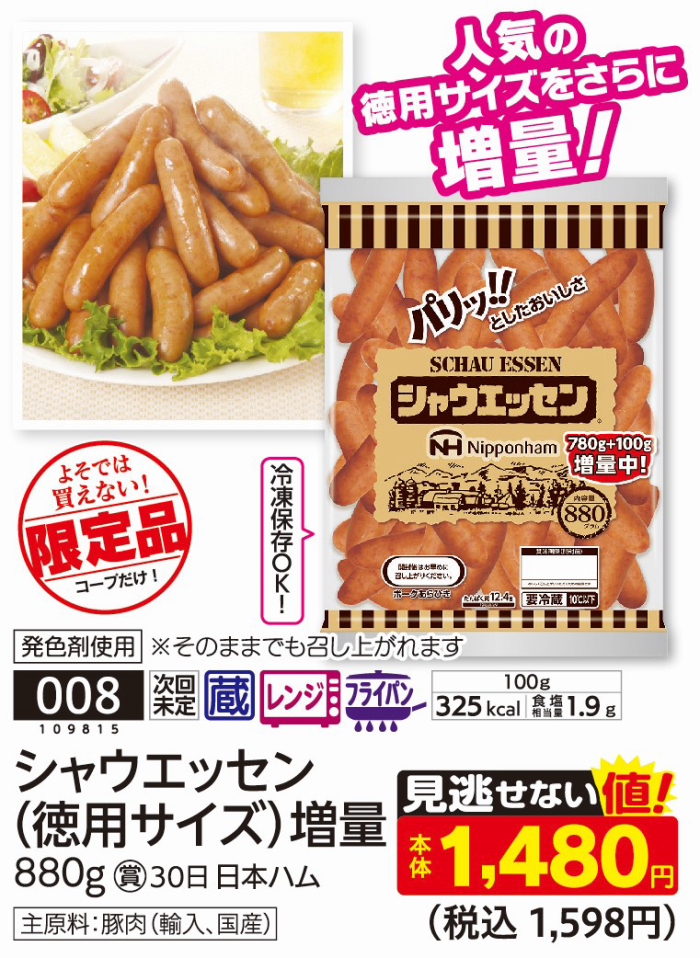 シャウエッセン(徳用サイズ)増量