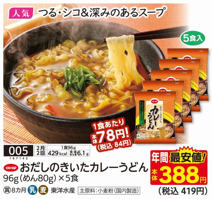 - CO・OPおだしのきいたカレーうどん 5食(コープ商品サイト)